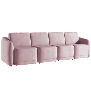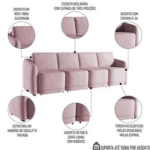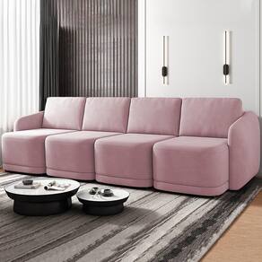 Renove sua sala de estar com o Sofá Cama Casal para Sala 436cm Polska K04 Veludo Rosê, da Mpozenato.