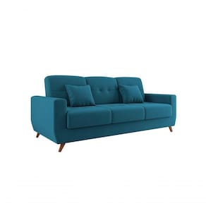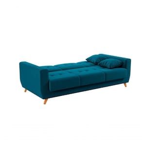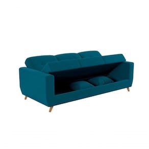 O sofá-cama Pâmela vem de uma linhagem de modelos que são reclinados por sistemas de catraca de três pinos, onde se utiliza no mesmo produto três posições diferentes: sentado como sofá, leitura com reclino de meio corpo e deitado onde se desfruta com o conforto de cama necessário para toda a noite. Para abertura, basta manusear o encosto inclinando-o para frente e voltar para trás deitando totalmente o encosto. Para a posição intermediária, retorne o encosto para cima até que faça um estalo, então o solte e terá a posição de leitura. Este modelo oferece ainda a praticidade e a multifuncionalidade de um baú abaixo do assento. Para abri-lo levante o assento para cima. Sofá cama de três lugares, suporta até 100kg por assento. Ideal para de salas de TV, de estar e quartos