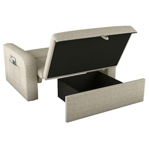 Material do tecido é Linho . Contém um baú para facilitar o armazenamento de cobertas e travesseiros. Espuma D23 Braças, D20 Assento e encosto.