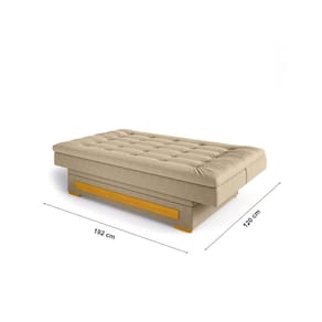 Possui base e pés em madeira com acabamento na cor cerejeira. Acompanha Almofadas extras: Não Almofada do assento: Fixa Almofada do encosto: Fixa Altura do assento até o chão: 46 Altura do Encosto: 47 Altura dos Pés: 4 Ambiente Principal: Sala de Estar Cor: Bege Cor do Produto: Bege Densidade do Assento: D-26 Densidade do Encosto: D-26 Enchimento do Assento: Espuma Enchimento do Encosto: Espuma Estilo de Braço: Sem Braços Firmeza do Assento: Médio Itens Inclusos: 1 Sofá Cama Material dos Pés: Madeira Eucalipto Medida como Cama (A x L x P): 96x192x120cm Modelo: Sofá Fixo Necessita Montagem: Não Origem do Produto: Nacional Peso: 50 Pet Friendly: Não Possui Baú: Sim Possui Percintas Elásticas: Sim Possui Pés: 04 Possui Rodízio: Não Reclinável: Sim Recomendações de Uso, Manutenção e Limpeza: Pano úmido Revestimento do Assento: Espuma e Tecido em Suede Revestimento do Encosto: Espuma e Tecido em Suede Rodízio com Trava: nao Tecido Predominante: Suede Tipo de Assento: Fixo Tipo de Encosto: Fixo Tipo de Mola: Não Possui Ean: 7909903410127
