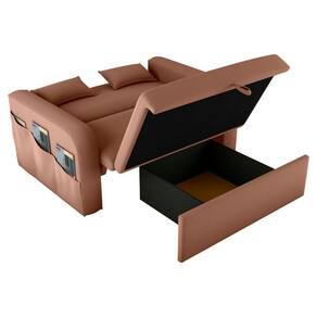 Material do tecido é Veludo. Contém um baú para facilitar o armazenamento de cobertas e travesseiros, 3 bolsos laterais. Espuma D23 Braças, D20 Assento e encosto almofadas fibra de silicone.