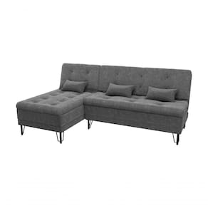 sofá cama nice c/ chaise oferece o diferencial de abertura por catraca,mecanismo de movimento e fixação assento/encosto, de fácil manuseio, prático e design moderno. dispõe de 03 posições (sentado, leitura e descanso). este sofá é produzido com madeira de reflorestamento, possui sistema de molas espirais e espuma de ótima, qualidade, pode acomodar até três pessoas como sofá e duas como cama, acompanha três, almofadas. suporta até 110 kg por assento.