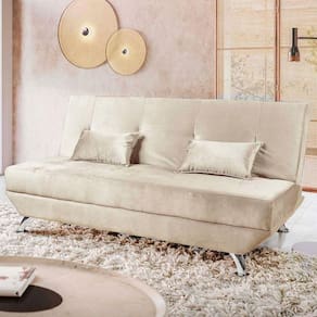 Sofá Cama Dubai Veludo Speciale Home Marfim A linha de sofá cama é composta por produtos versáteis e super funcionais, que complementam qualquer estilo de decoração. Na Star Confort até o básico tem toque especial, como opções extras de cor e acabamentos diferenciados. Dê um tom diido ao seu ambiente com esse produto.