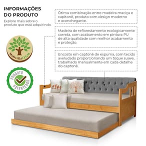 Com Detalhe Estofado Capitonê Tecido Estofado: Veludo Cor Estofado: Cinza Estrutura em Madeira Cor Estrutura: Imbuia Com estrado de Ripas de MDF 9mm