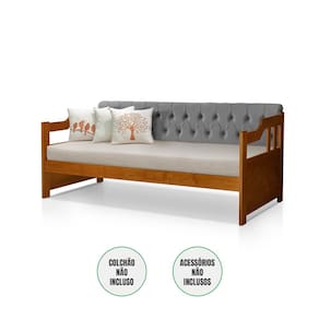 Com Detalhe Estofado Capitonê Tecido Estofado: Veludo Cor Estofado: Cinza Estrutura em Madeira Cor Estrutura: Castanho Com estrado de Ripas de MDF 9mm