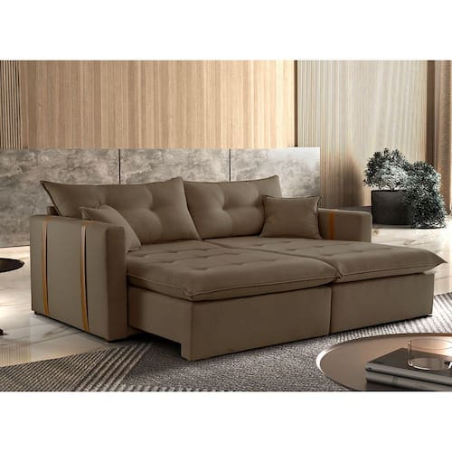 Suavidade e conforto em sua casa com o Sofá cama Lisboa, que possui encosto reclinável, assento com Pillow de molas ensacadas , percinta elástica tipo italiana para maior durabilidade, fibra siliconada, assento retrátil com rodízios que facilitam seu movimento.