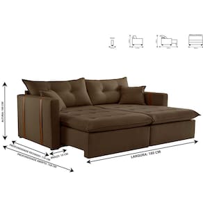 Sofa Cama e Reclinavel Lisboa 1,80m 03 Lugares Mola Ensacada Txr - Marrom Chocolate