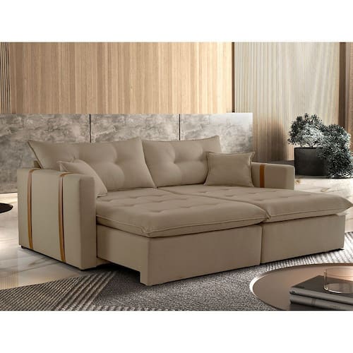 Suavidade e conforto em sua casa com o Sofá cama Lisboa, que possui encosto reclinável, assento com Pillow de molas ensacadas , percinta elástica tipo italiana para maior durabilidade, fibra siliconada, assento retrátil com rodízios que facilitam seu movimento.