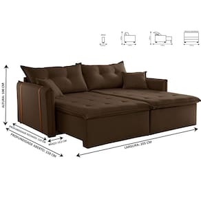 Dimensões: Altura: 100 cm Largura: 205 cm Profundidade Fechado: 110 cm Profundidade Aberto: 158 cm Peso: 84 kg