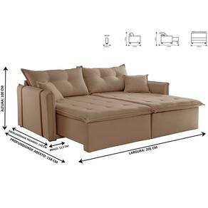 Características: Tipo: Sofá 3 lugares Cama, Retrátil e Reclinável Marca: TXR Modelo: SP Estrutura: Madeira de origem certificada, Eucalipto Revestimento: Em tecido Veludo Bege Pés: Em madeira reflorestada Assento: Retrátil - mola Bonnel + percinta tipo Italiana + Pillow com espuma D28 Encosto: Reclinável em 3 estágios. Braços: 12,5 cm Retrátil e Reclinável: Com mecanismo em aço