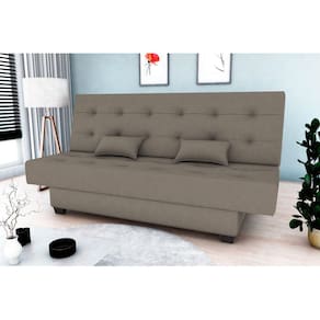 SOFÁ CAMA LAILA OFERECE O DIFERENCIAL DE ABERTURA COM SISTEMA DE CATRACADE TRÊS PINOS, DISPÕE DE 03 POSIÇÕES (SENTADO, LEITURA E DESCANSO). ESTE SOFÁ É PRODUZIDO COM MADEIRA DE REFLORESTAMENTO, POSSUI SISTEMA DE MOLAS ESPIRAIS E ESPUMA DE ÓTIMA QUALIDADE, PODE ACOMODAR ATÉ TRÊS PESSOAS COMO SOFÁ E DUAS COMO CAMA, ACOMPANHA DUAS ALMOFADAS   Espuma: D23 ASSENTO E D20 ENCOSTO Madeira: EUCALIPTO DE REFLORESTAMENTO Percinta: CINTA ELÁSTICA+MOLAS ESPIRAIS Composição dos Pés: 4 PÉS PVC Fixação: GRAMPOS E PARAFUSOS Composição da Embalagem: MALHA, PLÁSTICO E PAPELÃO Garantia: 90 DIAS Abertura: CATRACA Peso do Produto: 48 kg SUPORTA ATÉ 110 KG POR ASSENTO.   Medidas Sentado: AxLxP (90x186x93)Cm Medidas Leitura: AxLxP (80x186x103)Cm Medidas Descanso: AxLxP (45x186x112)Cm Medidas Assento: AxLxP (45x186x53)Cm Medidas Encosto: AxLxP (52x186x20)Cm   Grantia: 90 dias.    Recomendação de limpeza: Usa pano levemente umedecido com água, seguido por pano seco. Evitar exposição ao sol, para aumentar a durabilidade da cor do tecido. Não usar escova e/ou produtos abrasivos.   Montagem: Montagem, desmontagem e outras instalações serão de responsabilidade do cliente. Não nos responsabilizamos, no ato da entrega, por subir escadas/elevadores ou pelo transporte por guincho em apartamentos. Eventuais despesas são de responsabilidade do comprador;    Observações importantes: A tonalidade da cor do produto pode variar de acordo com a sua tela, a iluminação do ambiente ou sua percepção visual Lembrando que são fotos ilustrativas tratadas em estúdios podendo haver pequena diferença nas cores A montagem será de responsabilidade do comprador; Não nos responsabilizamos, no ato da entrega, por subir escadas/elevadores ou transporte por guincho em apartamentos. Eventuais despesas são de responsabilidade do comprador; Confira as dimensões deste produto e certifique-se de que passará normalmente por supostos elevadores, portas, escadas e/ou corredores de sua residência; Para mais informações, acesse nossa Central de Atendimento.