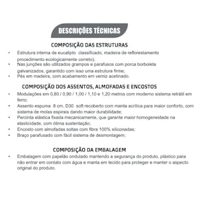 • Encosto com almofadas soltas com fibra 100% siliconadas;