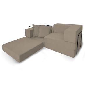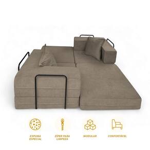 As laterais funcionam como encosto acolchoado, oferecendo apoio para relaxar, ler ou ver TV. Por ser leve e modular, é ideal para salas pequenas, quartos, e áreas multiuso, trazendo praticidade ao dia a dia.