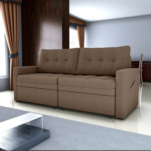 Sofá-cama Nayla 3 Lugares Retrátil Bouclê Marrom - Matrix