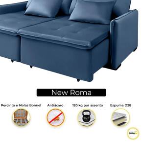 O modelo New Roma se destaca pela sua versatilidade. Ele se transforma facilmente em uma Sofá Cama, proporcionando uma opção extra de conforto e praticidade.