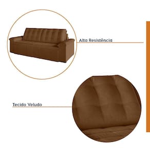 O Sofá Cama Palmeira MadeiraMadeira é a solução perfeita para quem tem pouco espaço disponível. Com ele você poderá acomodar suas visitas com conforto e praticidade. Produzido em madeira maciça de eucalipto, com as seguintes medidas (A x L x P): 103cm x 200cm x 112cm e suporta até 400kg. Depois nos conte como foi a experiência de compra e como ficou seu ambiente nos comentários! Produto Montado: Sim Altura do assento até o chão: 48.0000 Ambiente Principal: Sala de Estar codigo_ean: 7909903121900 Complexidade da Montagem: Baixa: pode ser montado por uma pessoa sozinha Cor: Marrom Cor do Produto: Marrom Enchimento do Encosto: Fibra Siliconada Estilo de Braço: Braços Pillow Top Manual de Montagem e Instalação: https://product-hub-prd.madeiramadeira.com.br/797644/documents/2500c17e-617b-4340-9964-5445e88ac2638aef38226ManualSofPalmeira.pdf Material dos Pés: Plástico Modelo: Sofá Bipartido Necessita Montagem: Sim Origem do Produto: Nacional Pet Friendly: Não Possui Baú: Não Possui Rodízio: Sim Profundidade Quando Estendido: 148 Recomendações de Uso, Manutenção e Limpeza: Evitar exposição direta à luz solar, limpar com escova macia e aspirar o pó semanalmente, não utilizar produtos químicos, removedores, alvejantes, etc. Evite exercer pressão excessiva sobre determinada partes do estofado, não utilizar para limpeza equipamentos a vapor de água. Sistema de Montagem: Parafusos e Engates Tecido Predominante: Veludo Tipo de Mola: Molas Bonnel Ean: 7909903121900