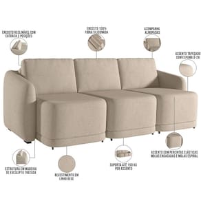 Peça central de uma sala de estar moderna e elegante, o sofá ideal deve ter não somente beleza, mas também funcionalidade, assim como o Sofá Cama Montserrat 306cm, da Lyam Decor. Com design arrojado, linhas curvas e acabamento alto padrão, esse sofá cama confortável será o protagonista do seu ambiente. Afinal, você poderá aproveitá-lo da forma mais adequada, seja para receber as visitas para um bate-papo, seja para assistir aquele filme em família enquanto usufrui da versatilidade de um sofá com extensão de cama.
