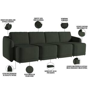 Assento tapeçado com espuma D-26, percintas elásticas, molas ensacadas e molas espiral.
