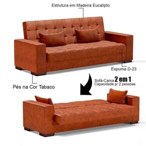 Escolher o Sofá cama correto pode ser uma tarefa difícil, pois, dependem de muitos fatores como espaço disponível, conforto, beleza e tipo do tecido, para te ajudar, apresentamos o Sofá Cama Lisboa! Ele possui 2 posições podendo ser utilizado como sofá e também como cama, caso receba alguma visita que venha passar a noite. Ele é produzido em madeira de eucalipto, seu estofamento apresenta todo o conforto da espuma D-23 e o assento é composto com percintas elásticas garantindo qualidade e durabilidade ao produto.