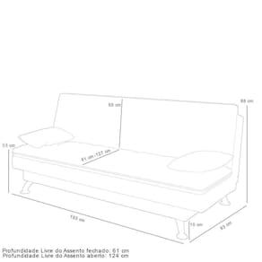Acompanha duas almofadas decorativas soltas com enchimento em fibras e flocos de espuma.