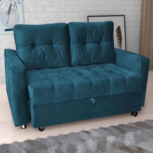 ALTURA DO PRODUTO COM EMBALAGEM (CM): 87 | COMPRIMENTO PRODUTO COM EMBALAGEM (CM): 107 | DESCRIÇÃO DO TAMANHO: 90x140x110 | PRODUTO: Sofá cama | INSTRUÇÕES/CUIDADOS: Limpar com pano macio e seco, não utilizar produtos abrasivos | LARGURA DO PRODUTO (CM): 140 | MATERIAL PARA FILTRO: Veludo Turkey | PESO DO PRODUTO (KG): 49 | MARCA: CasaH | LARGURA PRODUTO COM EMBALAGEM (CM): 145 | MATERIAL PRINCIPAL: Veludo Turkey | COR PREDOMINANTE: Petróleo | PESO SUPORTADO(KG):: 110kg | QUANTIDADES DE CAIXAS DE EMBALAGEM: 1 | PESO PRODUTO COM EMBALAGEM (KG): 52 | ALTURA DO PRODUTO (CM): 90 | PRODUTO PRECISA DE MONTAGEM?: Sugerimos a contratação de um montador para a montagem do produto. Não nos responsabilizamos por causadas no ato da montagem. | COMPRIMENTO DO PRODUTO (CM): 110 | CORES DO PRODUTO (FILTRO DE CORES): Petróleo | ESTADO DE ORIGEM: PR | CONTEÚDO DA EMBALAGEM: 1 Sofá cama
