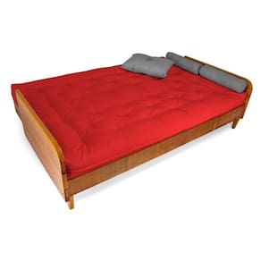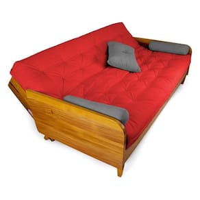 Material e estrutura: O colchão futon casal é fabricado em tecido de alta qualidade em Acquablock, seu enchimento é de mantas de algodão natural, manta fibra siliconada estruturado por espuma ortopédica D28. Possui amarras nas extremidades. A estrutura é produzida em madeira nobre grápia com pintura na cor natural.