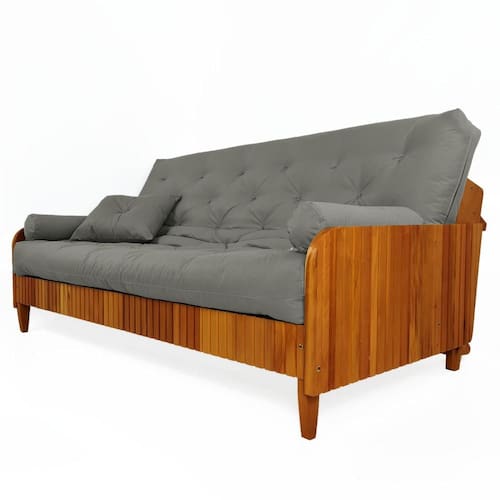 Sofá 4 Lugares Futon Paris Ripado de Madeira Maciça