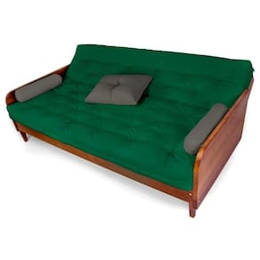 Material e estrutura: O colchão futon casal é fabricado em tecido de alta qualidade em Sarja, seu enchimento é de mantas de algodão natural, manta fibra siliconada estruturado por espuma ortopédica D28. Possui amarras nas extremidades. A estrutura é produzida em madeira nobre grápia com pintura na cor imbuia.