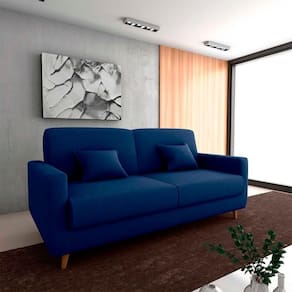 Acompanha duas almofadas decorativas de 35x35 cm que agregam charme e conforto extra ao ambiente. Ideal para salas, escritórios ou quartos de hóspedes, acomoda até 3 pessoas como sofá e 2 como cama.
