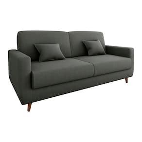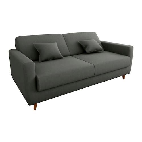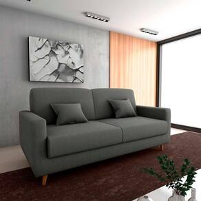 Acompanha duas almofadas decorativas de 35x35 cm que agregam charme e conforto extra ao ambiente. Ideal para salas, escritórios ou quartos de hóspedes, acomoda até 3 pessoas como sofá e 2 como cama.