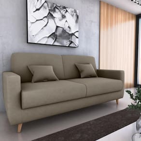 Acompanha duas almofadas decorativas de 35x35 cm que agregam charme e conforto extra ao ambiente. Ideal para salas, escritórios ou quartos de hóspedes, acomoda até 3 pessoas como sofá e 2 como cama.