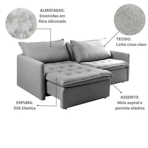 O sofá Califórnia é uma excelente escolha para quem quer aliar conforto e versatilidade no ambiente. Você pode escolher a melhor forma de usá-lo: recolhido ou estendido com o encosto completamente deitado. Eles são uma solução conveniente para espaços menores, quartos de hóspedes ou salas de estar onde você deseja aproveitar ao máximo o espaço disponível, tornando-o funcional tanto durante o dia quanto à noite. Os braços são estreitos proporcionando maior espaço útil para o assento. Possui a estrutura em eucalipto tratado e travamento da estrutura por grampos fixados com grampeadores pneumáticos. Assento com espuma D26 elástica, mola espiral e percintas elásticas de alta qualidade e resistência. Almofadas do encosto preenchidas 100% com fibra siliconada. Acompanha Almofadas extras: Não Almofada do assento: Fixa Almofada do encosto: Removível Altura do assento até o chão: 47 cm Altura do Encosto: 45 cm Ambiente Principal: Sala de Estar Complexidade da Montagem: Baixa: pode ser montado por uma pessoa sozinha Cor: Cinza Claro Cor do Produto: Cinza Claro Densidade do Assento: D-26 Densidade do Encosto: D-26 Enchimento do Assento: Espuma Enchimento do Encosto: Fibra Siliconada Estilo de Braço: Braços Quadrados Firmeza do Assento: Médio Itens Inclusos: 1 Sofá, Kit Ferragens e Manual de Montagem Linha ou Coleção: Califórnia Manual de Montagem e Instalação: https://product-hub-prd.madeiramadeira.com.br/868838/documents/7d8e4a11-3815-4a9d-b154-cc4c74f03a441591766sofacalifornialink.pdf Material dos Pés: 08 pés em madeira e 04 pés rodízio de silicone Necessita Montagem: Sim Origem do Produto: Nacional Peso: 60 kg Pet Friendly: Não Possui Baú: Não Possui Percintas Elásticas: Sim Possui Pés: 12 Possui Rodízio: Sim Profundidade Quando Estendido: cm Recomendações de Uso, Manutenção e Limpeza: Utilizar aspirador de pó, escova com cerdas macias ou limpeza a seco. Não utilizar produtos químicos, abrasivos ou limpeza a vapor. Evitar exposição prolongada ao sol. Revestimento do Braço: Linho Rodízio com Trava: Não Sistema de Montagem: Macho e fêmea Suporta Até (kg): 360 kg Tecido Predominante: Linho Tipo de Encosto: Regulável Tipo de Mola: Molas Espirais Marca: Zurc Decor Ean: 7909903453490
