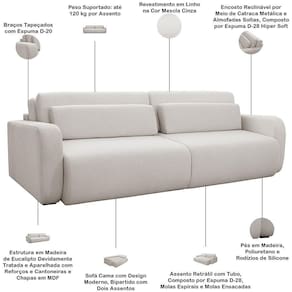 Mecanismo de abertura do produto: Retrátil em tubo | Cor: Cinza | Altura: 88 cm | Orientação do Sofá: Frontal | Tipo de produto: Sofá Cama, Sofá Retrátil | Peso: 63 kg | Unidades por kit: 1 | Peso máximo suportado: 240 kg | Material do estofamento: Linho | Requer montagem: Não | Material de enchimento do encosto: Espuma Hiper Soft D-28 | Linha: Sala de Estar, Living | Formato do sofá: Linear | Estilo: Moderno | Desenho do tecido: Liso | Fabricante: Lyam Decor | Densidade da espuma do assento: D-28 | Largura: 230 cm | Cor dos pés: Marrom | Profundidade: 113 cm | Quantidade de Caixas de embalagem: 2