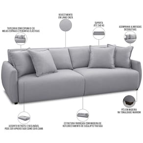 Sinta-se nas nuvens com o Sofá Cama Retrátil Sky 270cm, da Lyam Decor.