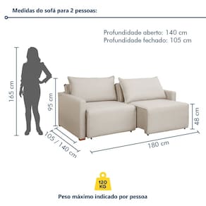 Sofá Cama Retrátil e Reclinável 180cm Linho Júlia Bege
