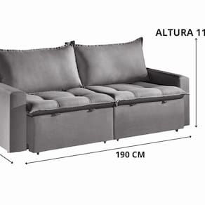 O Sofá Cama Retrátil e Reclinável Itália oferece praticidade e conforto para qualquer ambiente. Com 190cm de largura, ele se transforma facilmente em cama, proporcionando um descanso completo para seus convidados. O mecanismo retrátil e reclinável permite ajustar o sofá para várias posições, garantindo relaxamento e conforto. Seu design moderno e versátil combina com diversos estilos de decoração, seja em sala de estar ou dormitório.