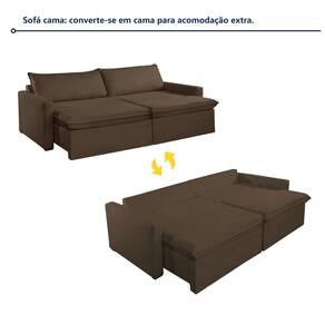 Este sofá cama acomoda quantas pessoas? Acomoda confortavelmente até três pessoas no modo sofá e duas no modo cama. Largura (cm): 200 Possui Pés: 08 Pet Friendly: Não Tipo de Mola: Mola Espiral Altura dos Pés: 2.5 Modelo do Sofá: Somente Retrátil Possui Rodízio: Sim Suporta Até (kg): 120 Profundidade (cm): 106 Tipo de Encosto: Fixo Material dos Pés: Madeira Altura do Encosto: 42 Origem do Produto: Nacional Rodízio com Trava: Não Ambiente Principal: Sala de Estar Necessita Montagem: Sim Resistente à Chuva: Não Densidade do Assento: D-28 Densidade do Encosto: D-18 Enchimento do Assento: Hyper Soft Enchimento do Encosto: Fibra Siliconada Quantidade de Lugares: 02 Complexidade da Montagem: Baixa: pode ser montado por uma pessoa sozinha Serviço Impermeabilização: 102610509 Acompanha Almofadas Extras: Não Possui Percintas Elásticas: Sim Altura do Assento até o Chão: 53 Profundidade Quando Estendido: 150 Recomendações de Uso, Manutenção e Limpeza: A limpeza do revestimento deve ser feita com escova ou tecido de algodão branco levemente umedecidos em água morna, sabão neutro ou produto específico. Não usar produtos corrosivos nem a base de solventes, como: cloro, alvejantes, detergentes, entre outros;Não expor o estofado à luz direta. Mantenha portas e janelas sempre protegidas com cortinas e blackout. A exposição contínua à radiação da luz, danifica o revestimento, apodrecendo os fios, trincando a superfície e desbotando as cores;Não lavar o revestimento das almofadas pois pode desfiá-las, abrindo as costuras;Não utilizar o estofado para fins diferentes do que foi projetado: ficar em pé, pular, arrastar, sentar nos braços, peso na caixa traseira, entre outros tipos de ações que poderão danificar o produto. Marca: Montano Estofados Itens Inclusos: 1 Sofá, Kit Ferragens e Manual de Montagem Sistema de Montagem: Sim