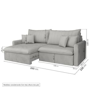 Sofá Cama Retrátil e Reclinável 260cm Colibri Cabecasa Madeiramadeira Veludo Cinza