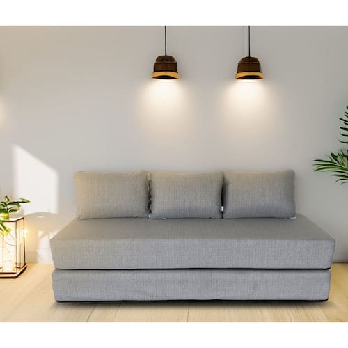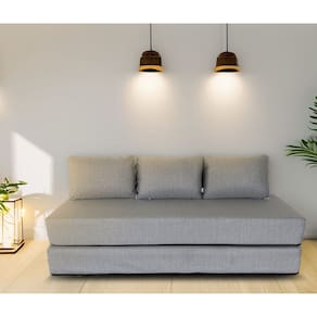 Com um tamanho ideal de 0,60 x 1,80 cm, este sofá-cama confeccionado em linho cinza proporciona um toque suave e agradável à pele, garantindo conforto durante toda a noite.