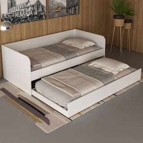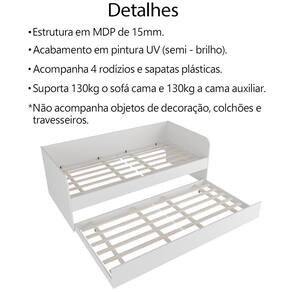 Sofa Cama Solteiro Com Auxiliar CM8032, é a escolha certa para você que busca conforto e bem-estar, tornando o seu ambiente muito mais elegante e moderno. Estrutura em MDP de 15mm, proporcionando maior durabilidade e resistência a peça, contando com acabamento revestido em pintura UV (semi - brilho). Composto por 4 rodízios e acompanha sapatas plásticas, móvel multifuncional pode ser utilizado como sofá cama e dispõe de uma cama auxiliar na parte inferior, ideal para colchão solteiro de 90,5 x 190 cm. Suportando até 130kg o sofá cama e 130kg a cama auxiliar. Possui design diferenciado, que oferece sofisticação, versatilidade e charme ao seu ambiente. Este móvel chegará na sua casa separado em 2 volumes.