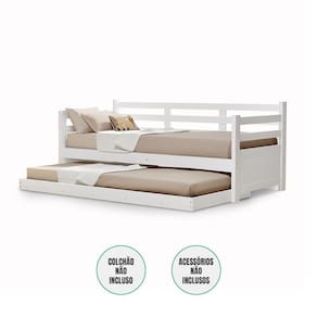 AS IMAGENS SÃO MERAMENTE ILUSTRATIVAS E PODEM SOFRER VARIAÇÕES DE COR E PEQUENOS DETALHES DE ACORDO COM O SEU MONITOR, ILUMINAÇÃO DO AMBIENTE E ATÉ MESMO A SUA PERCEPÇÃO VISUAL.Sofà Cama Solteiro Enjoy Madeira - Branca