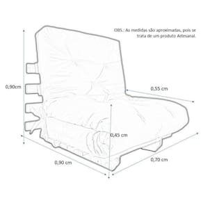 Medidas como sofá: Largura 70 cm Profundidade total 90 cm Altura do assento 41 cm.