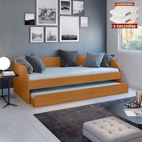 O Sofá Cama Duo é um produto versátil, que possibilita o uso durante o dia, como sofá, e a noite como cama. Além de possuir um design moderno e neutro que se adapta a qualquer estilo de decoração, levando conforto, praticidade e elegância para a sua casa. CARACTERÍSTICAS: Tipo: Sofá cama Modelo: Duo Cor: Nature Produto acompanha colchão DIMENSÕES DO PRODUTO: Altura: 66cm Largura: 193cm Comprimento cama fechada: 94cm Comprimento cama aberta: 185cm Informações adicionais: - Material e espessura estrutura de cada parte do produto: Todo em MDP 15mm, com barra lateral 20mm, com cama auxiliar em MDF 15mm. - Peso máximo suportado cada cama: 100Kg em uso comum. - Tem estrado na cama auxiliar?: tem estrado de madeira, e suporte de travessas anti-ruídos. - Altura do estrado da cama auxiliar em relação ao chão: 6cm. - Tem Rodízios na cama auxiliar?: sim 4 rodízios deslizantes. - Tamanho dos colchões recomendados para as duas camas: sofá até 16 cm altura - Auxiliar até 12 cm. - Altura do assento: 40cm aproximadamente, dependendo da altura do colchão. - Tipo de fixação dos materiais: parafusos Philips. ATENÇÃO AS IMAGENS SÃO MERAMENTE ILUSTRATIVAS E PODEM SOFRER VARIAÇÕES DE COR E PEQUENOS DETALHES DE ACORDO COM O SEU MONITOR, ILUMINAÇÃO DO AMBIENTE E ATÉ MESMO A SUA PERCEPÇÃO VISUAL. Marca: Não Informado