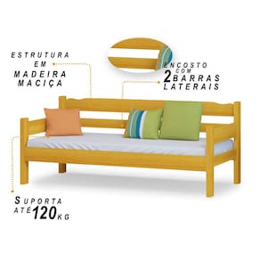 Este sofá cama é produzido 100% em madeira maciça, garantindo: