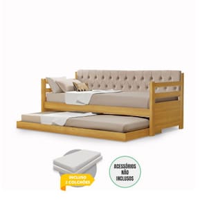 Com Detalhe Estofado Capitonê Tecido Estofado: Veludo Cor Estofado: Bege Estrutura em Madeira Cor Estrutura: Imbuia Com estrado de Ripas de MDF 9mm