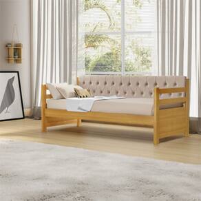 Com Detalhe Estofado Capitonê Tecido Estofado: Veludo Cor Estofado: Bege Estrutura em Madeira Cor Estrutura: Imbuia Com estrado de Ripas de MDF 9mm