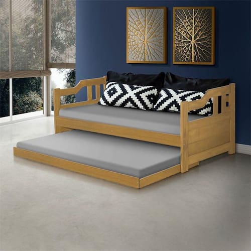 Sofá Cama Texas De Madeira Maciça Com Cama Auxiliar Imbuia