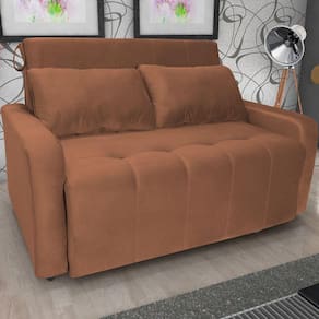 Este sofá cama não só oferece um toque de elegância à sua decoração, mas também a funcionalidade que você precisa. Com seu design moderno e cores versáteis, ele se adapta a qualquer ambiente. Transforme sua sala em um espaço convidativo e esteja pronto para acomodar visitas inesperadas com facilidade. Acompanha Almofadas extras: 02 Almofada do assento: Fixa Almofada do encosto: Fixa Altura do assento até o chão: 45 Altura do Encosto: 47 Altura dos Pés: 5 Ambiente Principal: Sala de Estar Cor: Cobre Cor do Produto: Cobre Densidade do Assento: D-23 Densidade do Encosto: D-20 Enchimento do Assento: Espuma Enchimento do Braço: Espuma D-20 Enchimento do Encosto: Espuma Estilo de Braço: Braços Redondos Firmeza do Assento: Médio Itens Inclusos: 1 Sofá Cama, 2 Almofadas Material dos Pés: PVC Medida como Cama (A x L x P): 50x138x186 cm Modelo: Sofanete Necessita Montagem: Não Origem do Produto: Nacional Peso: 50 Pet Friendly: Não Possui Baú: Não Possui Percintas Elásticas: Não Possui Pés: 06 Possui Rodízio: Sim Reclinável: Sim Recomendações de Uso, Manutenção e Limpeza: Para maior durabilidade, recomendamos que a limpeza dos estofados com revestimento em tecido, seja feito com aspirador de pó em baixa rotação ou escova com cerdas macias para a eliminação de poeira. Não utilizar produtos de limpeza. Revestimento do Assento: Veludo Revestimento do Braço: Veludo Revestimento do Encosto: Veludo Light Rodízio com Trava: Não Tecido Predominante: Veludo Tipo de Assento: Fixo Tipo de Encosto: Regulável Tipo de Mola: Não Possui Ean: 7909903413470