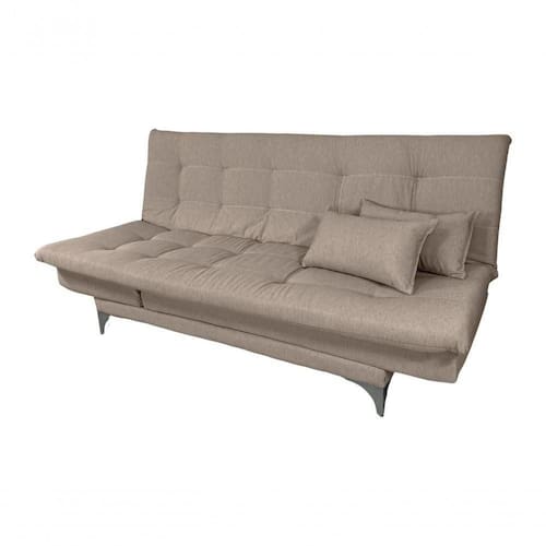 Este sofá cama acomoda tranquilamente 3 pessoas sentadas e duas deitadas, ele pode ser até 5 posições diferentes. Espuma de alto conforto com a densidade tanto no assento como no encosto D26, com percintas elásticas e molas bonel, pés e base em madeira maciça e acompanha duas almofadas que pode ser como travesseiro.