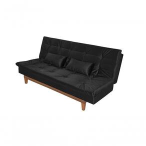 Este sofá cama acomoda tranquilamente 3 pessoas sentadas e duas deitadas, ele pode ser até 5 posições diferentes. Espuma de alto conforto com a densidade tanto no assento como no encosto D26, com percintas elásticas e molas bonel, pés e base em madeira maciça e acompanha duas almofadas que pode ser como travesseiro.